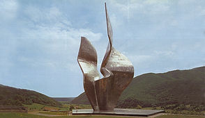 While Bakić began his career very strongly, putting on many shows and building numerous public works, his early work was very much centered around the Soviet-influenced 'socialist realism' style. It was in this figurative style that Bakić was commissioned to create several Partisan monuments at locations across Yugoslavia, the very first being a large temporary installation in Zagreb's Republic Square (today Ban Jelačić Square) in 1945 for the marking of the 1st Congress of the Antifascist Women's Front. However, in the late 50s and early 60s, as his fame began to grow, he shifted his style towards abstraction and modernist forms, a style in which he created his most recognizable work, 'Taurus'. During this time, Bakić reigns in his artistic style to focus on depicting life and nature through minimalist geometric forms. Furthermore, in an attempt to actively integrate light into his sculptures, he experiments with utilizing highly polished stainless steel and other reflective materials in his works (Photo 1). The sculptures that Bakić made with these metals were so dynamicly luminescent in their geometry and patterning that it almost appeared that Bakić was sculpting light itself. He employed the use of reflective metal in his WWII memorial sculpture commissions at Petrova Gora, Kamenska and Kragujevac, among others. In 1980, Bakić won the prestigious 'Vladimir Nazor Award' for his life and achievements in the arts.